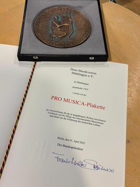 Diese Auszeichnung ist nicht nur eine große Ehre, sondern auch ein bedeutendes Zeichen der Anerkennung für mehr als 100 Jahre engagierte musikalische Vereinsarbeit. Die PRO MUSICA-Plakette ist die höchste staatliche Auszeichnung für instrumentales Amateurmusizieren in Deutschland. Sie wird vom Bundespräsidenten gestiftet und an Vereine vergeben, die sich über mindestens ein Jahrhundert hinweg in besonderer Weise für die Pflege und Weiterentwicklung der Blasmusik eingesetzt haben.
