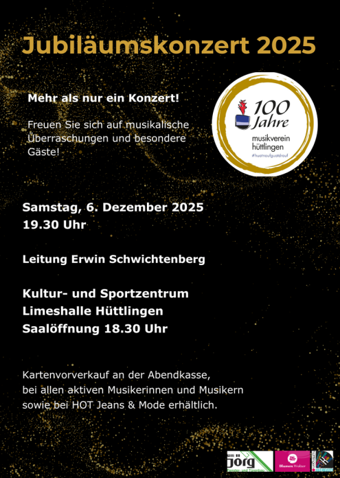 Ab sofort sind Karten im Vorverkauf bei allen aktiven Musikerinnen und Musikern sowie bei HOT Jeans und Mode in Hüttlingen erhältlich.